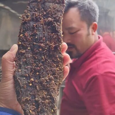 – Thit hấp cách thủy hoặc nướng trên than hoa/ nướng trong lò vi sóng rồi gói vào giấy báo dùng chày đập cho mèm sau đó xé nhỏ hoặc chỉ cần xé nhỏ, túi gia vị tăng kèm được làm từ các loại hạt đặc trưng của Tây Bắc, khi ăn chỉ cần trộn thêm với tương ớt và chấm là cảm nhận được trọn vẹn vị Tây Bắc. Rất hợp để làm món nhậu cho các anh, món ăn vặt cho trẻ con.